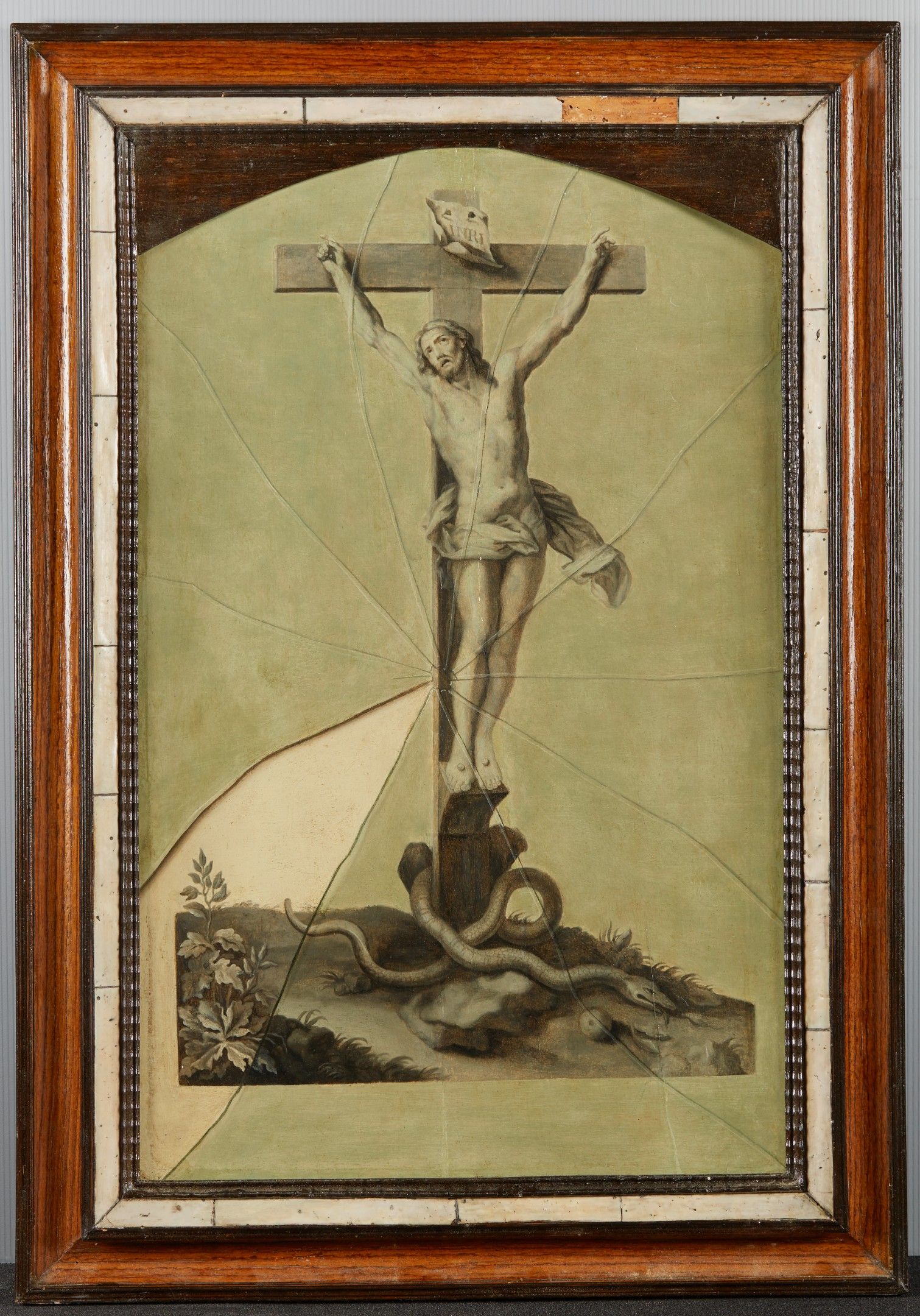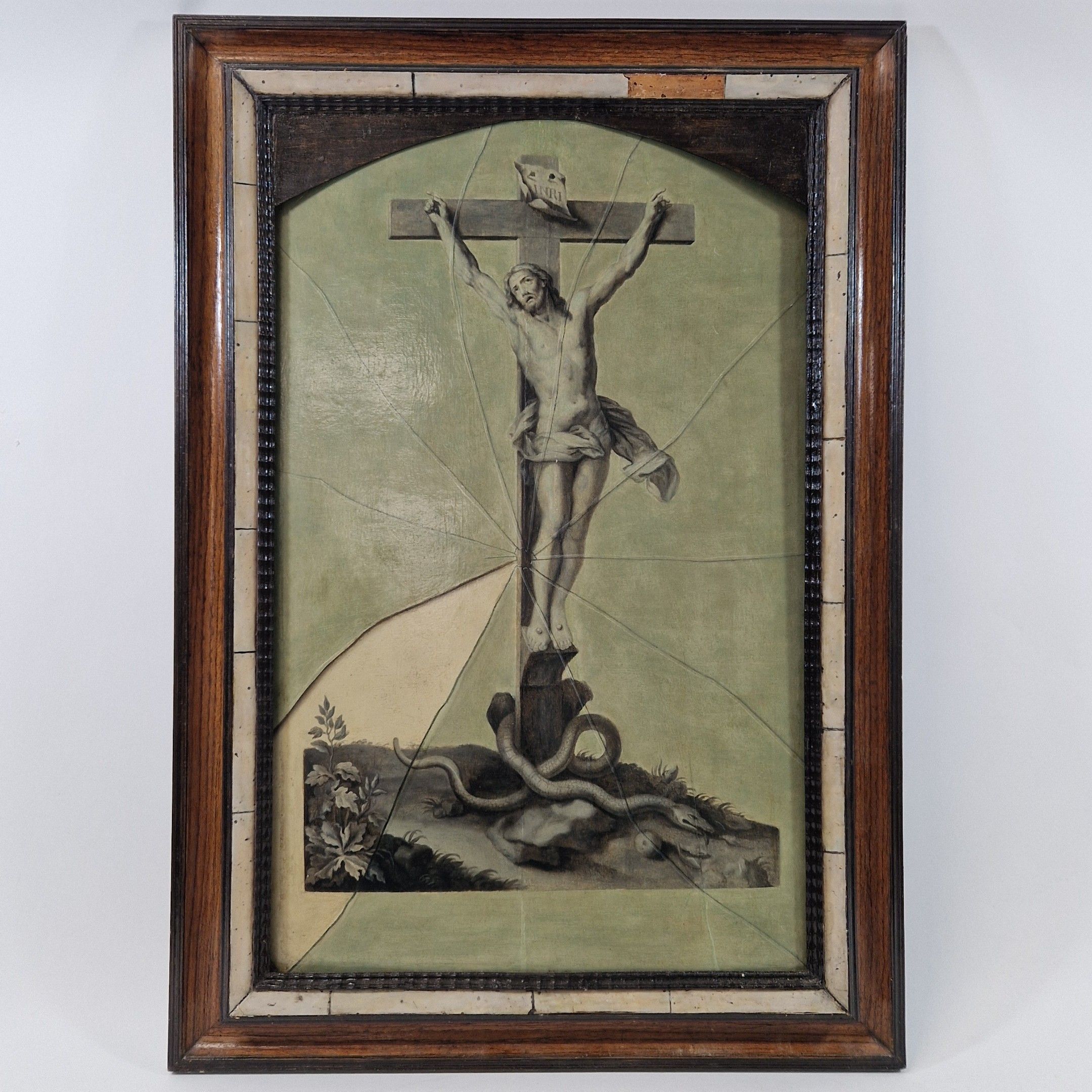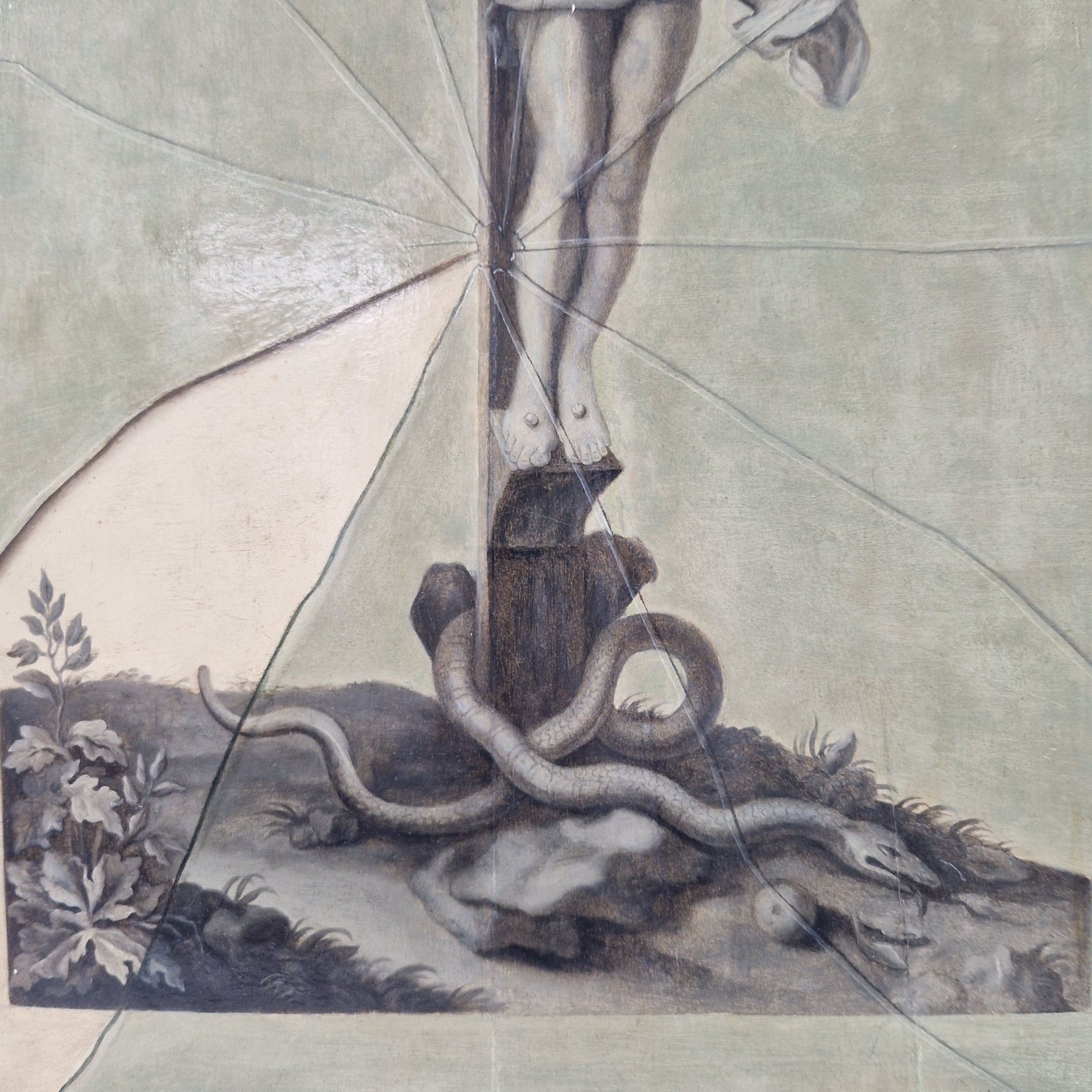 Crucifixion en trompe l’œil au verre brisé