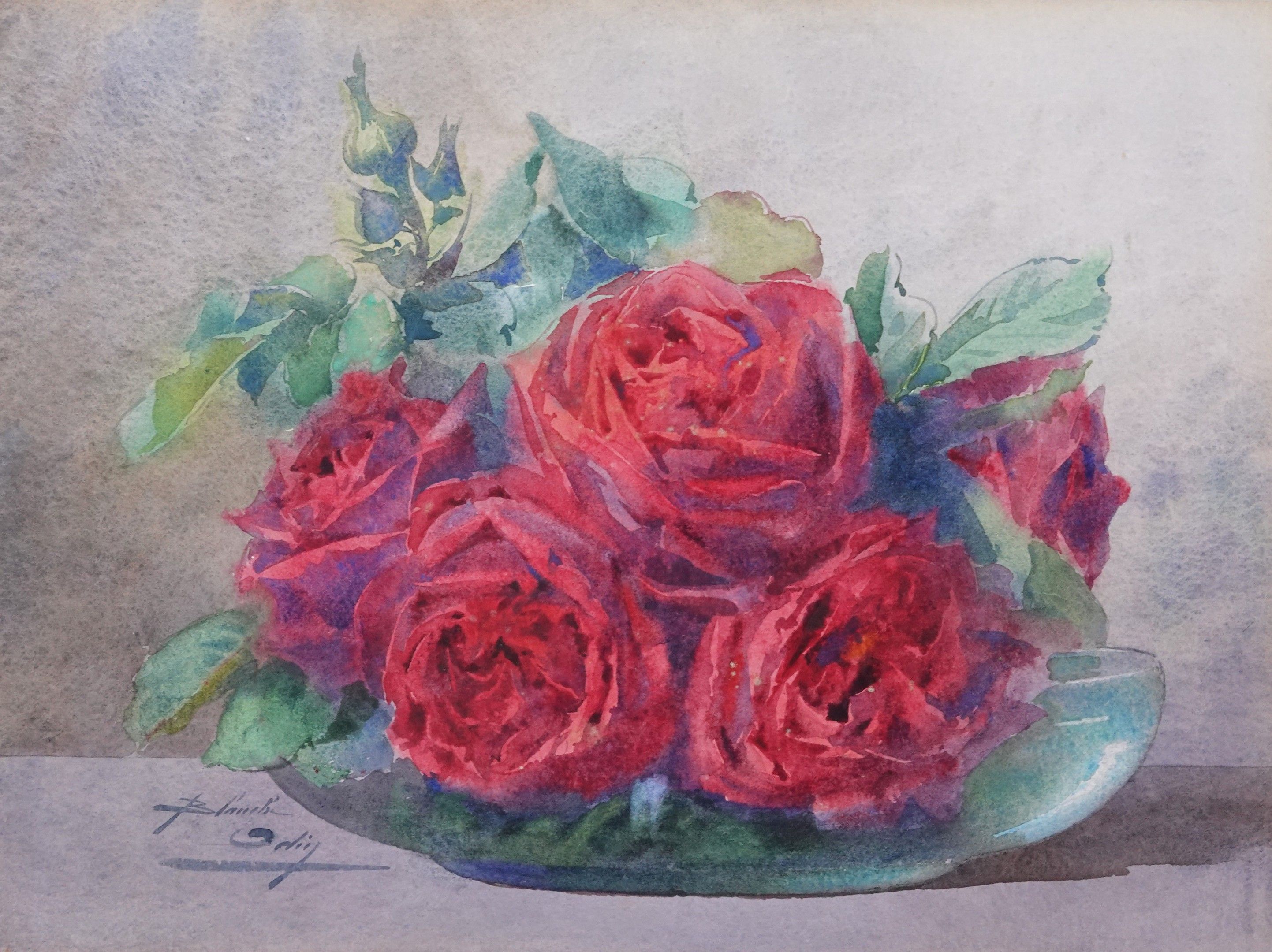 Premium Blanche ODIN (1865-1957) Bouquet de roses Aquarelle, signée …