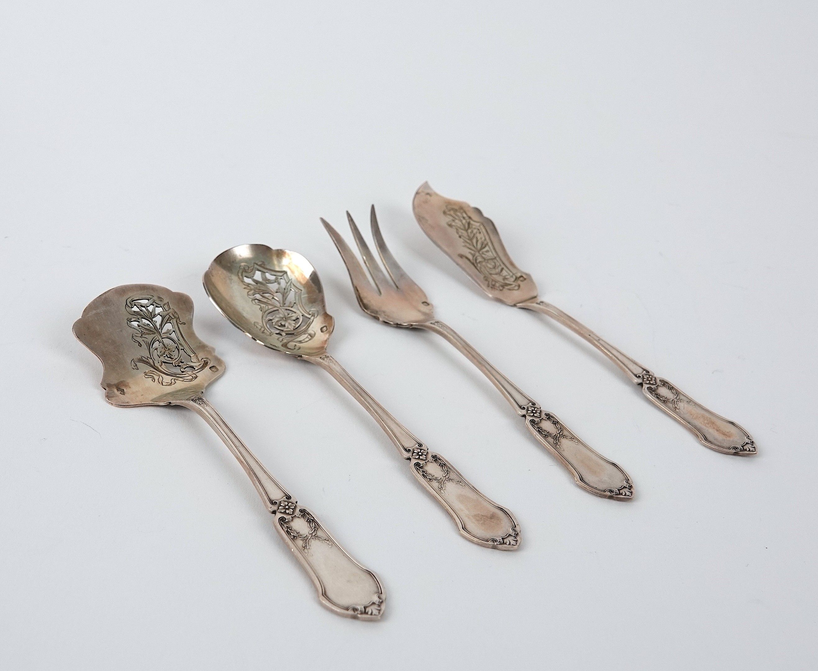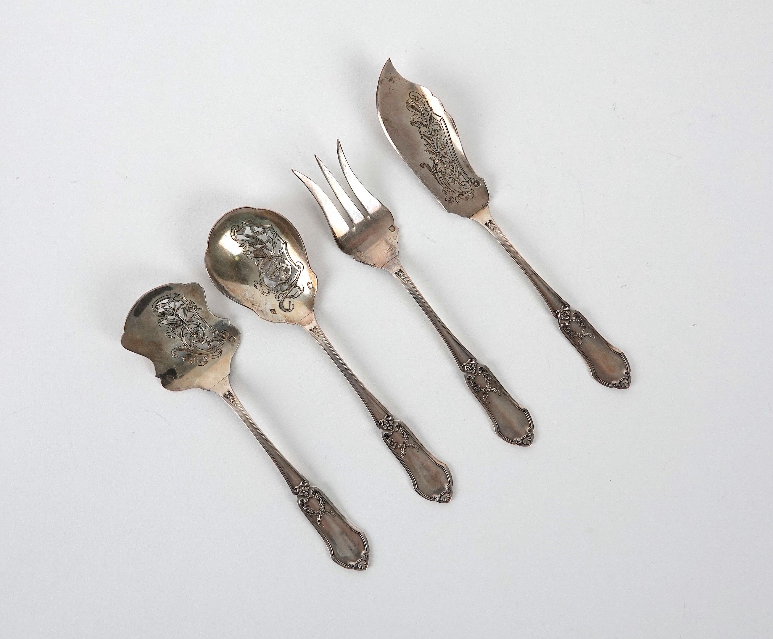 Service à bonbons en argent, comprenant quatre pièces de service.
