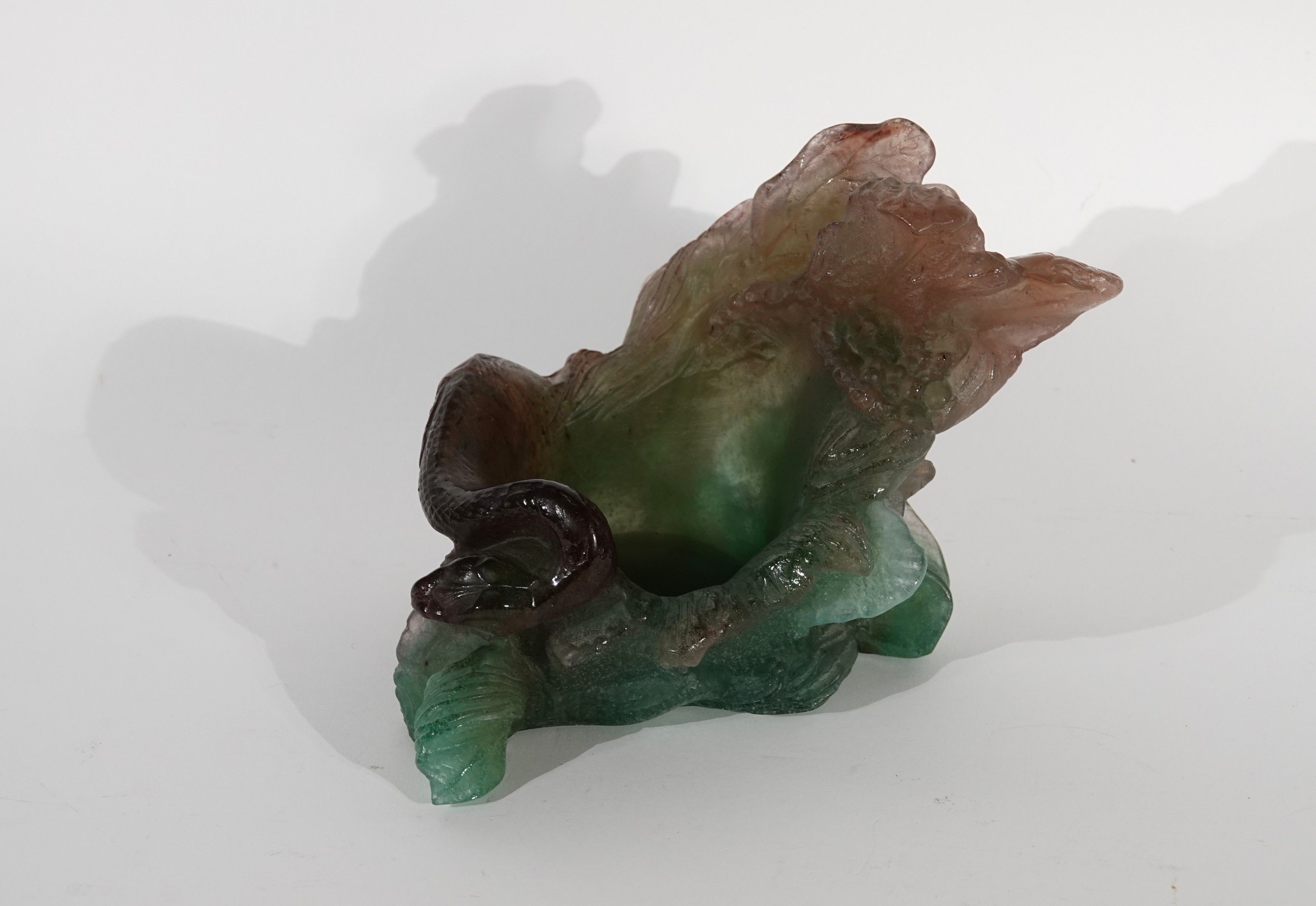 Coupe en verre polychrome à décor en relief d'un serpent.