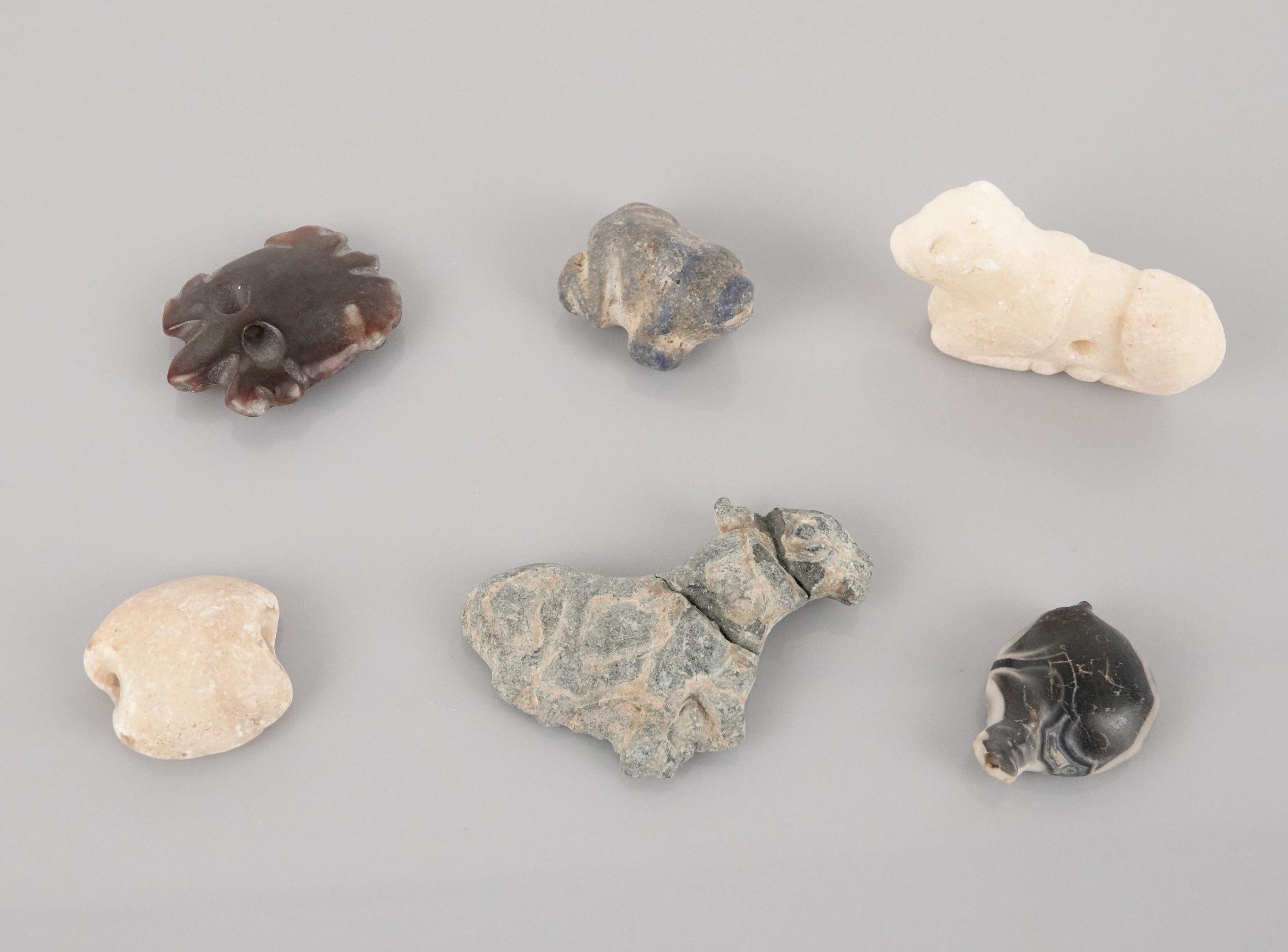 Ensemble de six amulettes de forme animale ou géométrique, t…