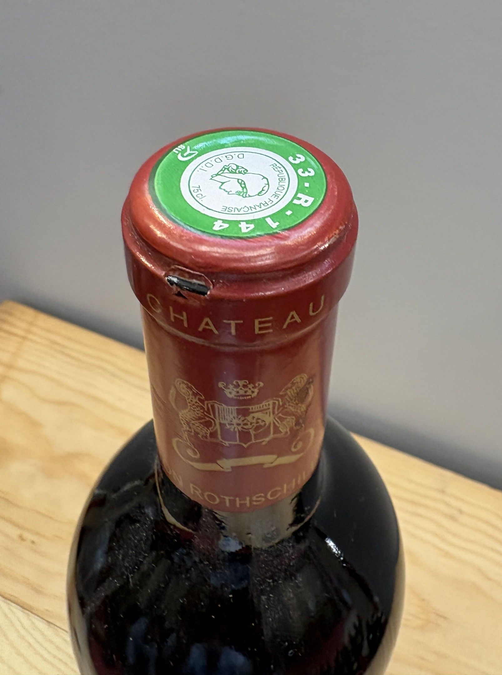 Etiquette légérement abîmée. Capsule légèrement abîmée.