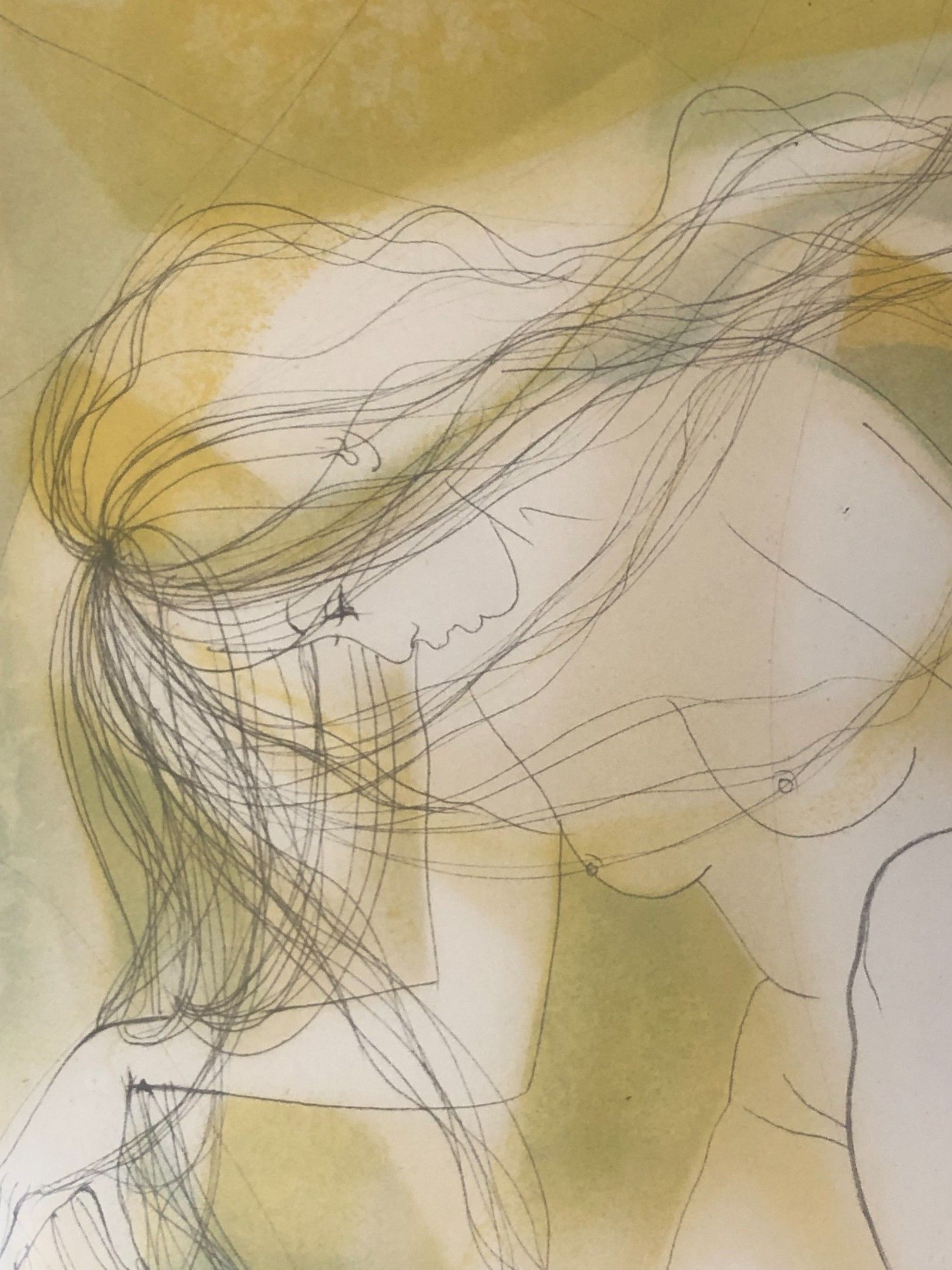 Jean-Baptiste VALADIE (né en 1933), "Femme nue aux brindilles" Lithographie encadrée EA III/XX (78x57)
