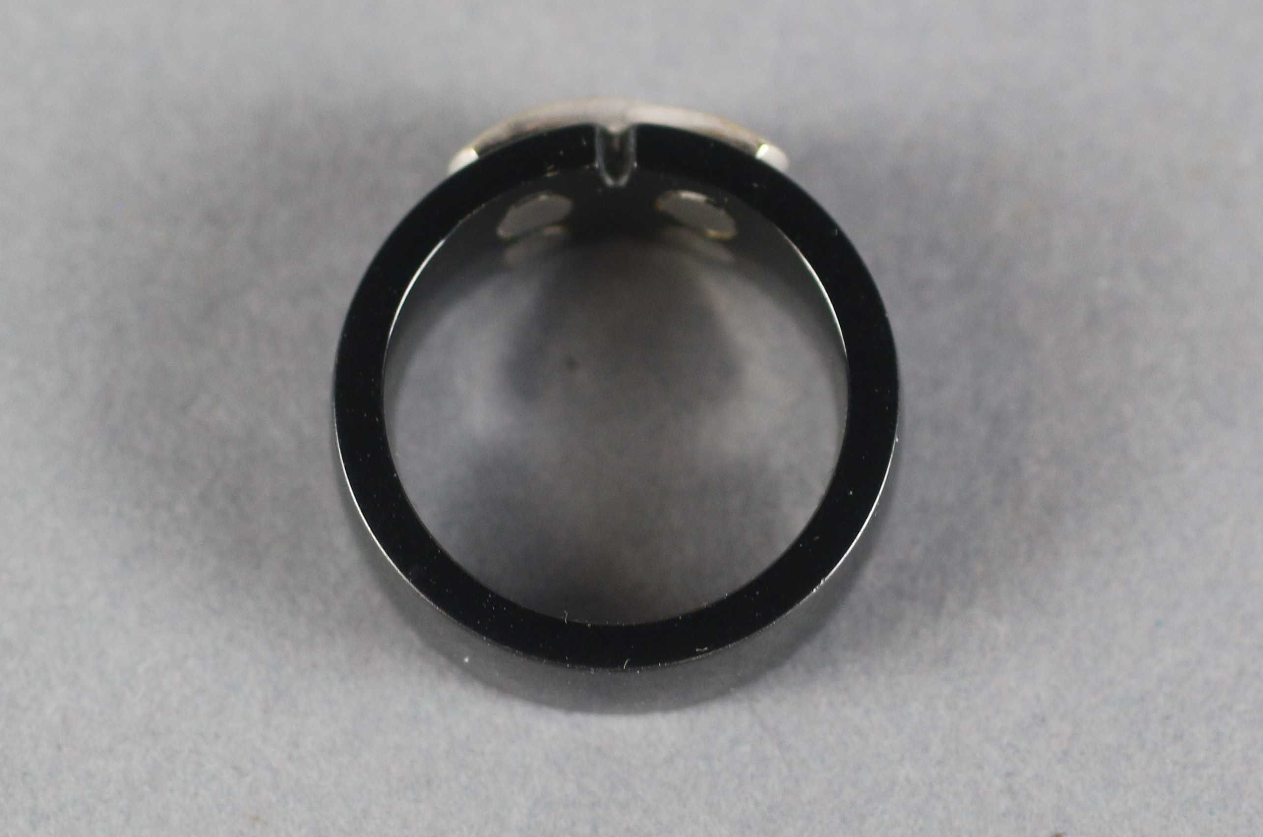 BAGUE en céramique à décor d'une croix sertie de petits diam…