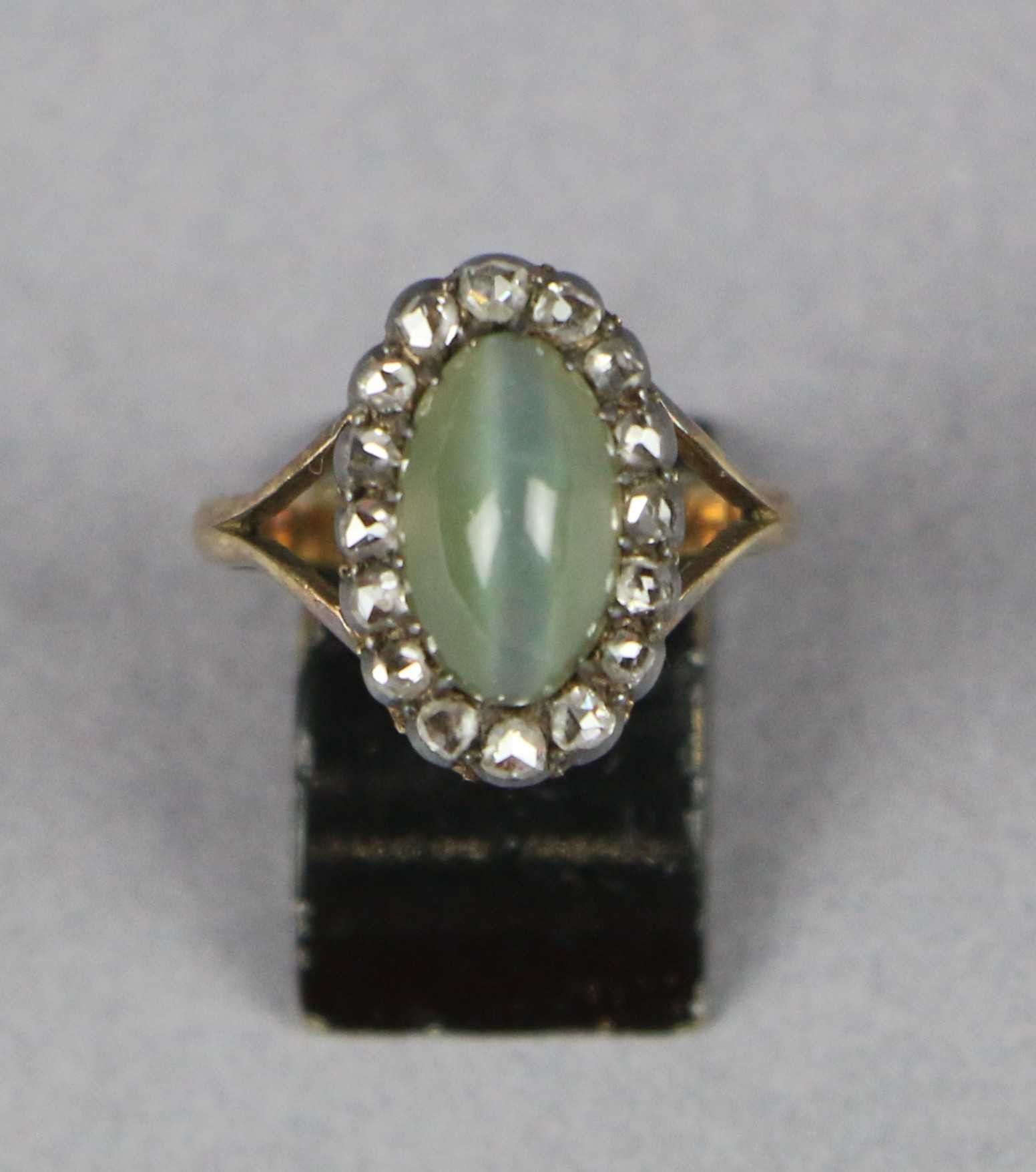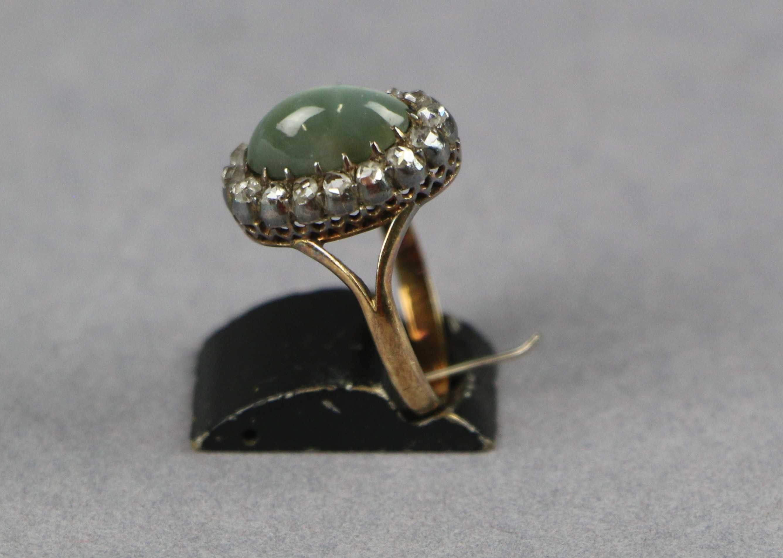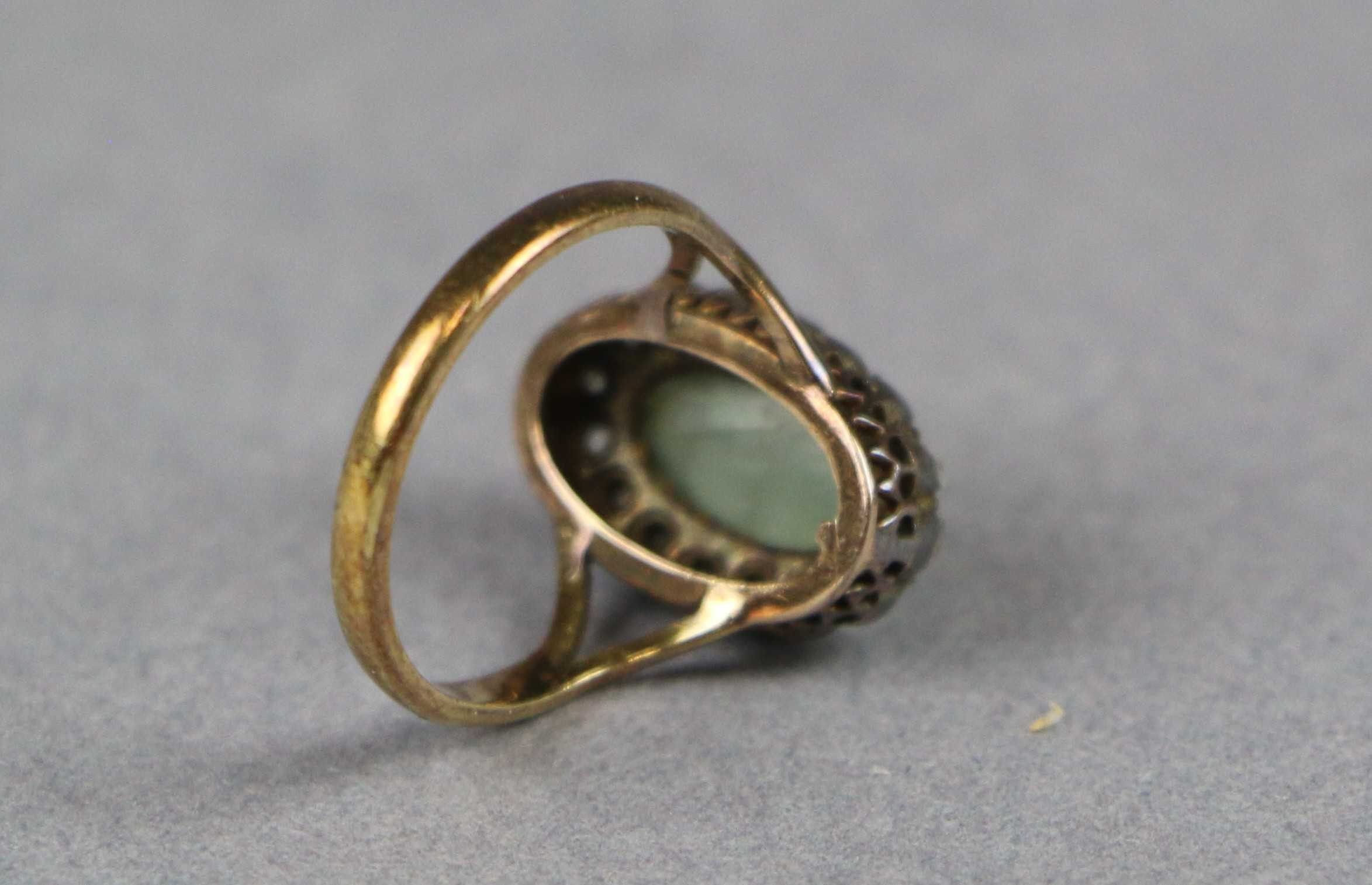 BAGUE en or ornée d'une pierre grise rayée blanche et petits diamants. Dispensée. Poids brut : 3,38 g TDD : 50