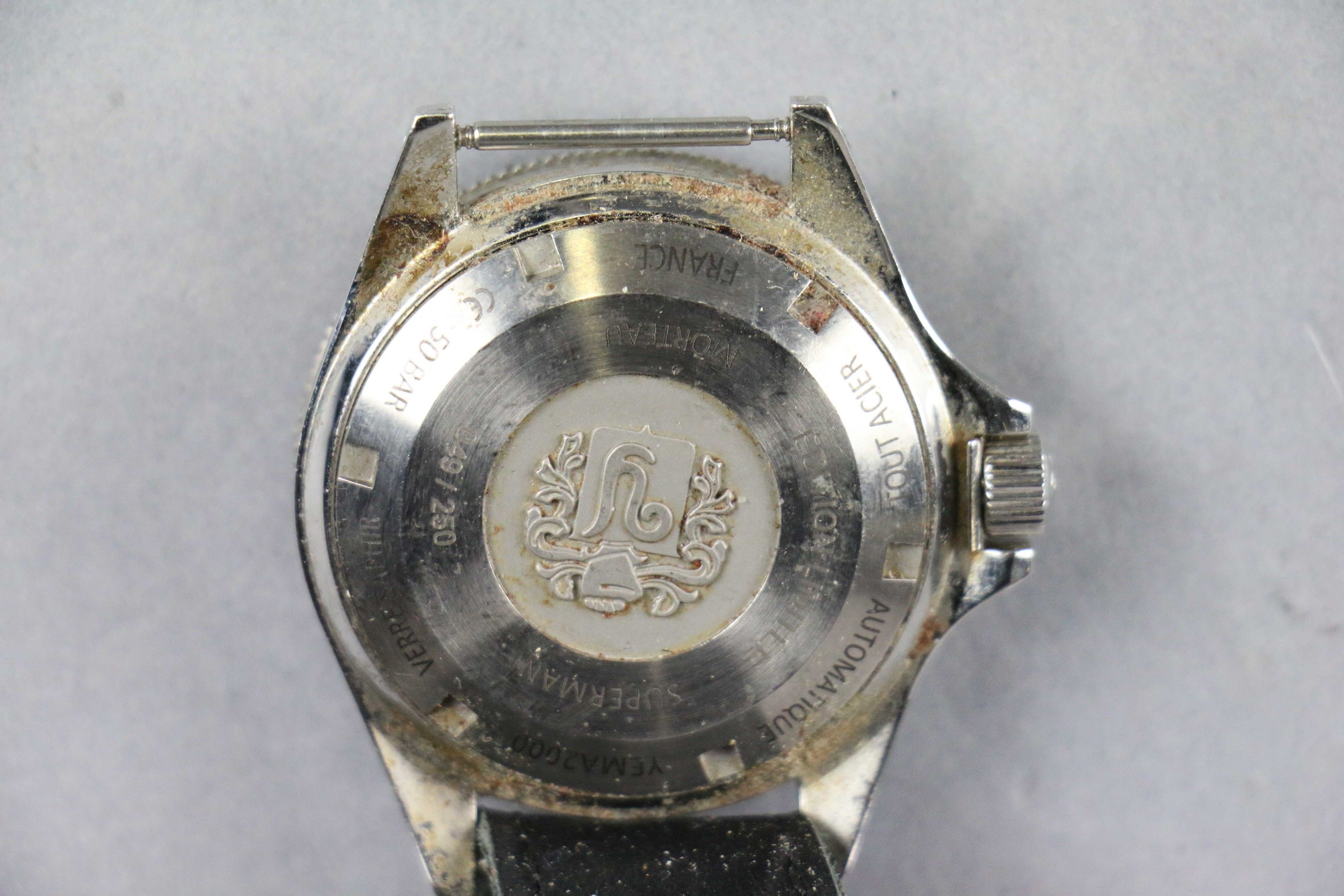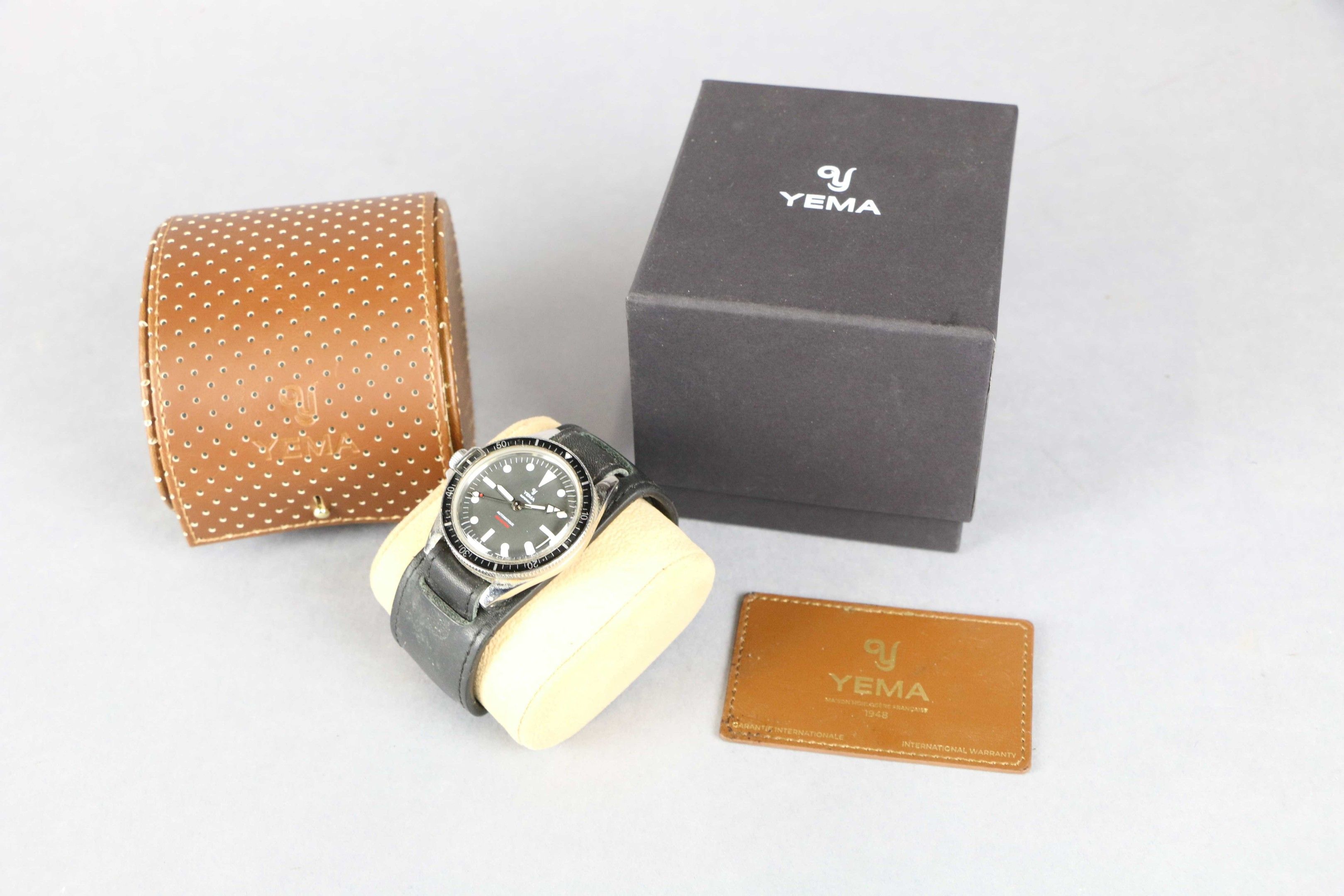 YEMA : MONTRE d'homme modèle Superman à boîtier acier et bracelet cuir. Mouvement automatique fonctionnel. Boîtier de 41 mm hors couronne. Dans sa boîte avec papiers.