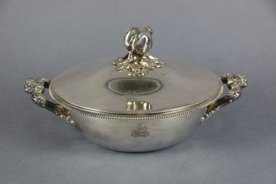 LEGUMIER en argent à fond plat à décor de filets godronnés, …