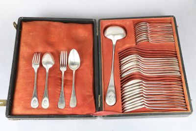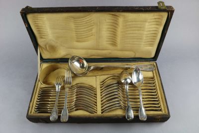 MENAGERE en argent comprenant douze couverts en argent, modè…