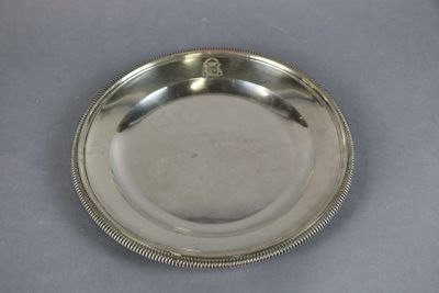 PLAT circulaire en argent à décor de filets et bord godronné…