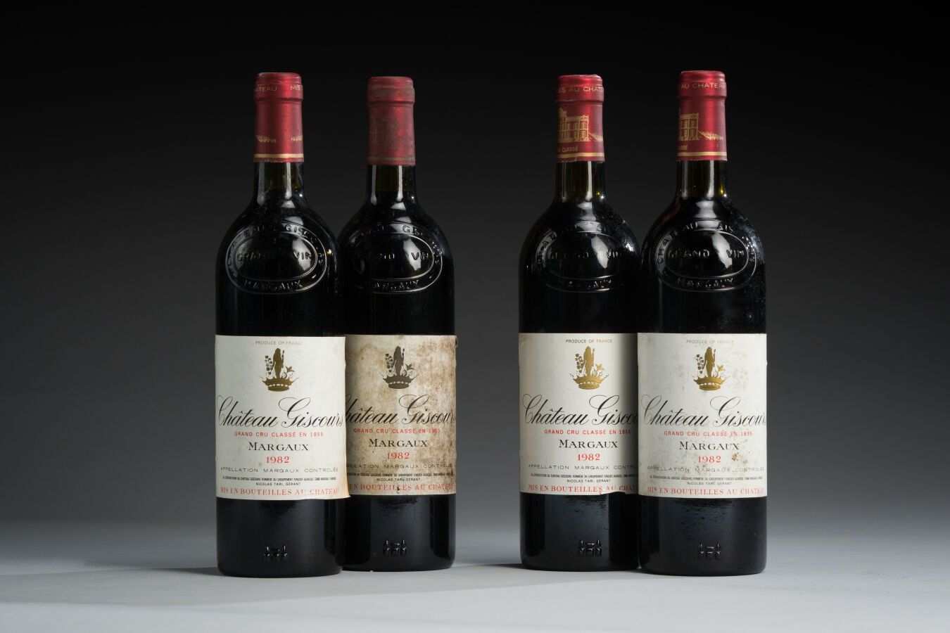8. 4 bouteilles Château Giscours - 3e Gcc Margaux, 1982. (Étiquettes légèrement tachées).