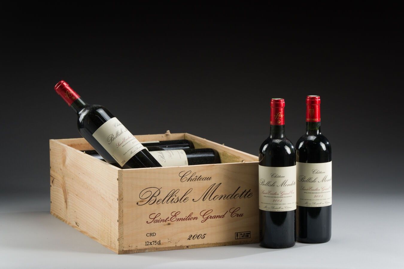 17. 12 bouteilles Château Bellisle Mondotte, 2005. Dans une caisse en bois.