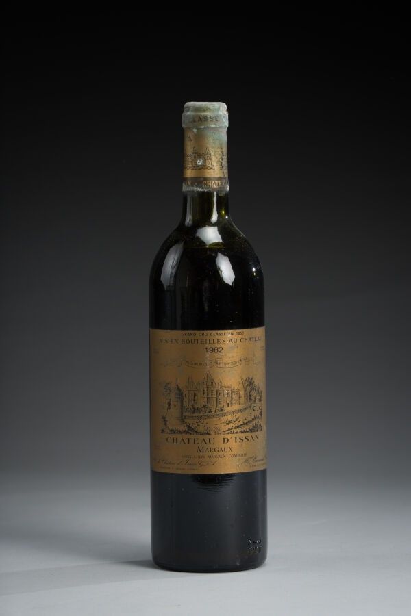 25. 1 bouteille Château d'ISSAN 1982 - 3e Gcc Margaux. (Étique légèrement griffée, bas goulot. Mi-épaule+ cc).