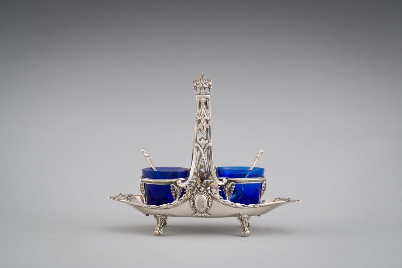 187. Salière double en argent (950/1000) à décor de rubans. Poids : 205 g