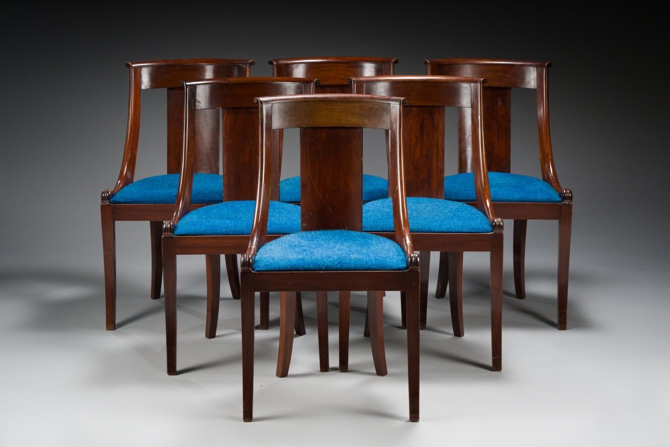 232. Suite de six chaises gondole en acajou.