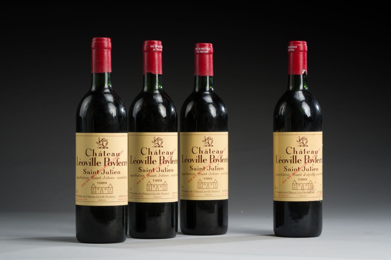38. 4 bouteilles Château Leoville Poyferre - 2e Gcc Saint Julien, 1989. (1 Étiquette abîmée, 1 haute-épaule).