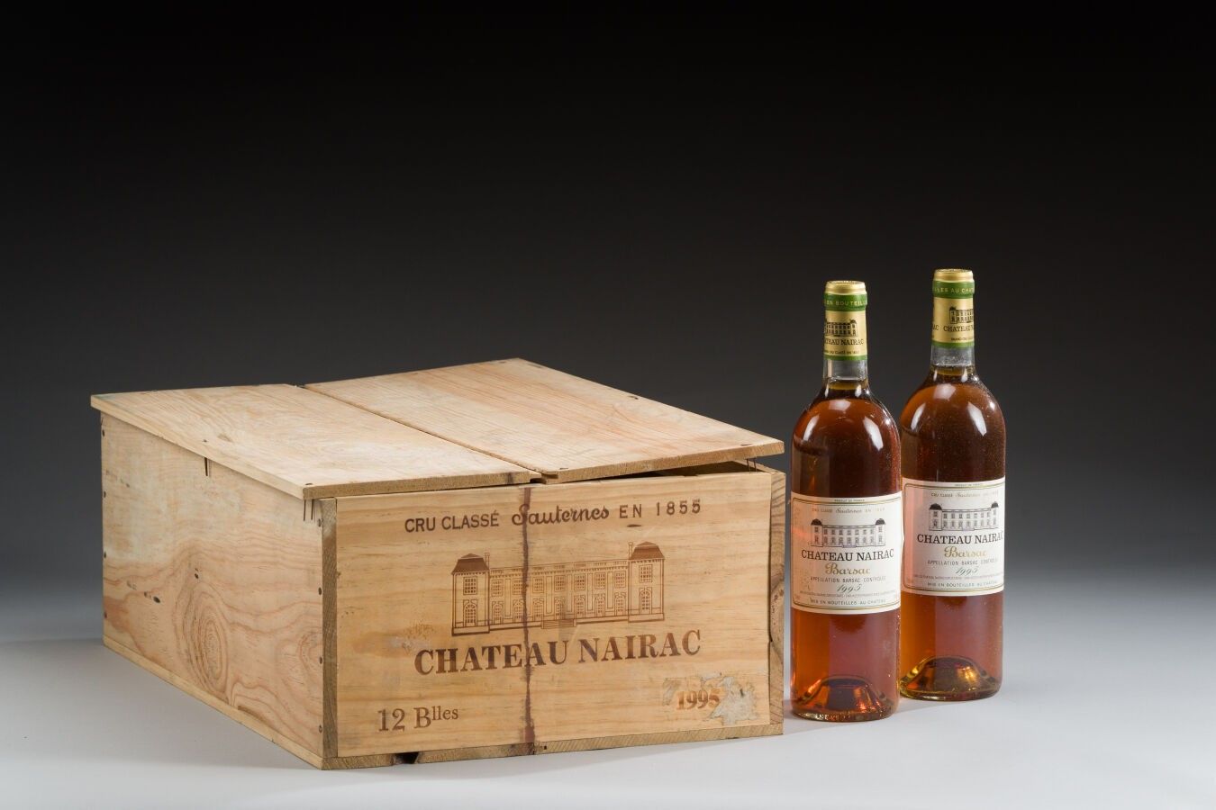 46. 12 bouteilles Château Nairac, 1995. Dans une caisse en bois.