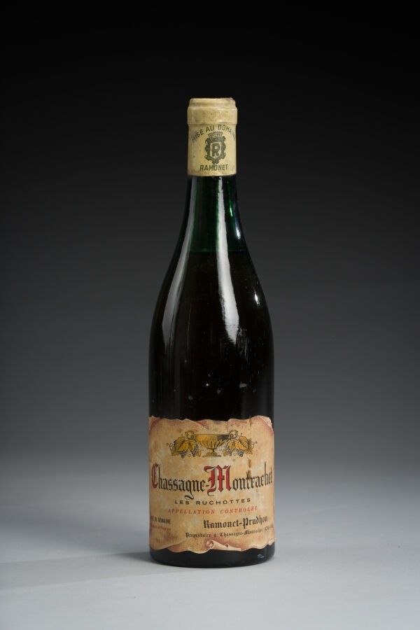 54. 1 bouteille Chassagne Montrachet Les Rouchottes - Ramonet Prudhon. Années 80. (Millésime absent. 4,5 cm).
