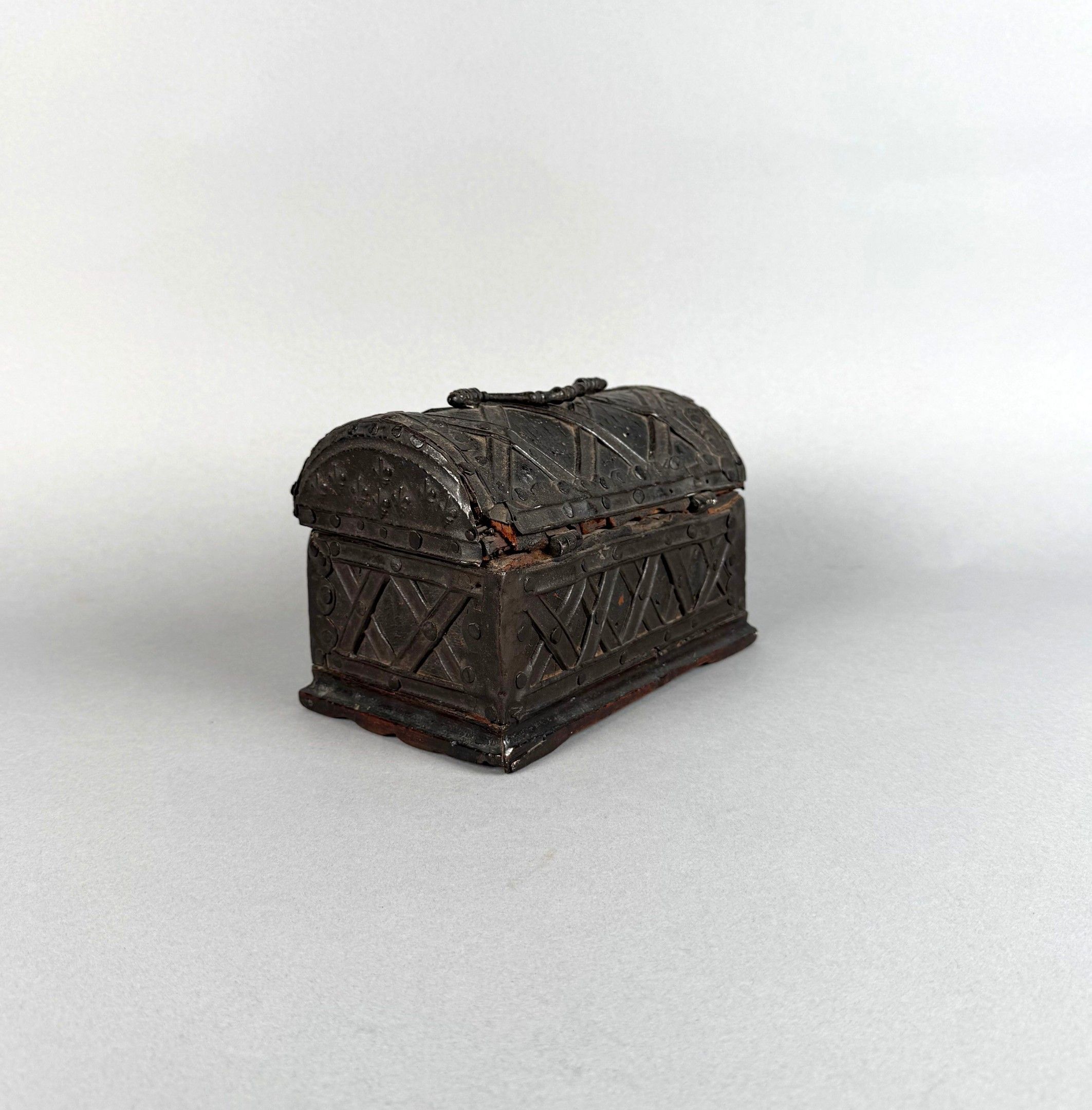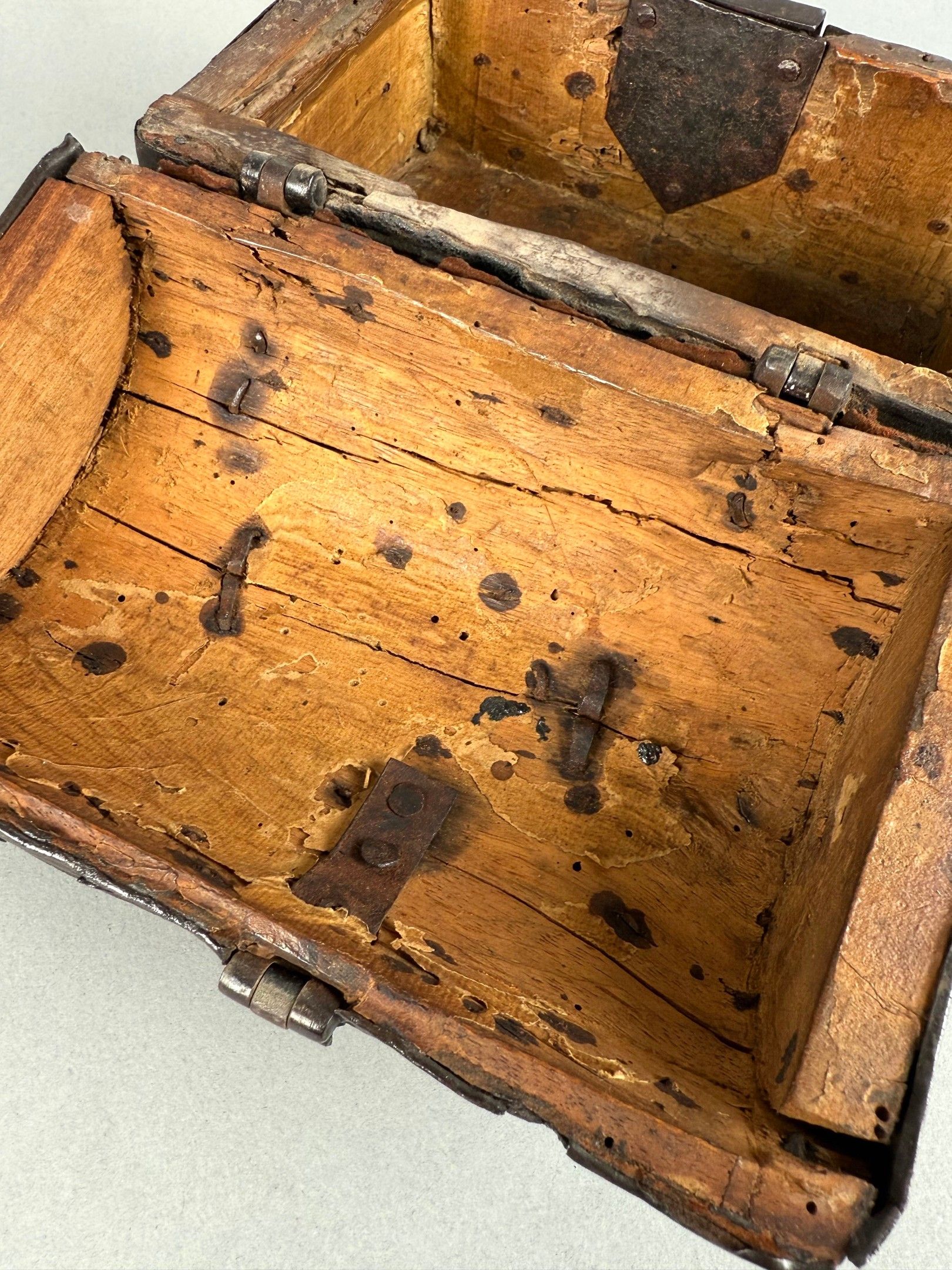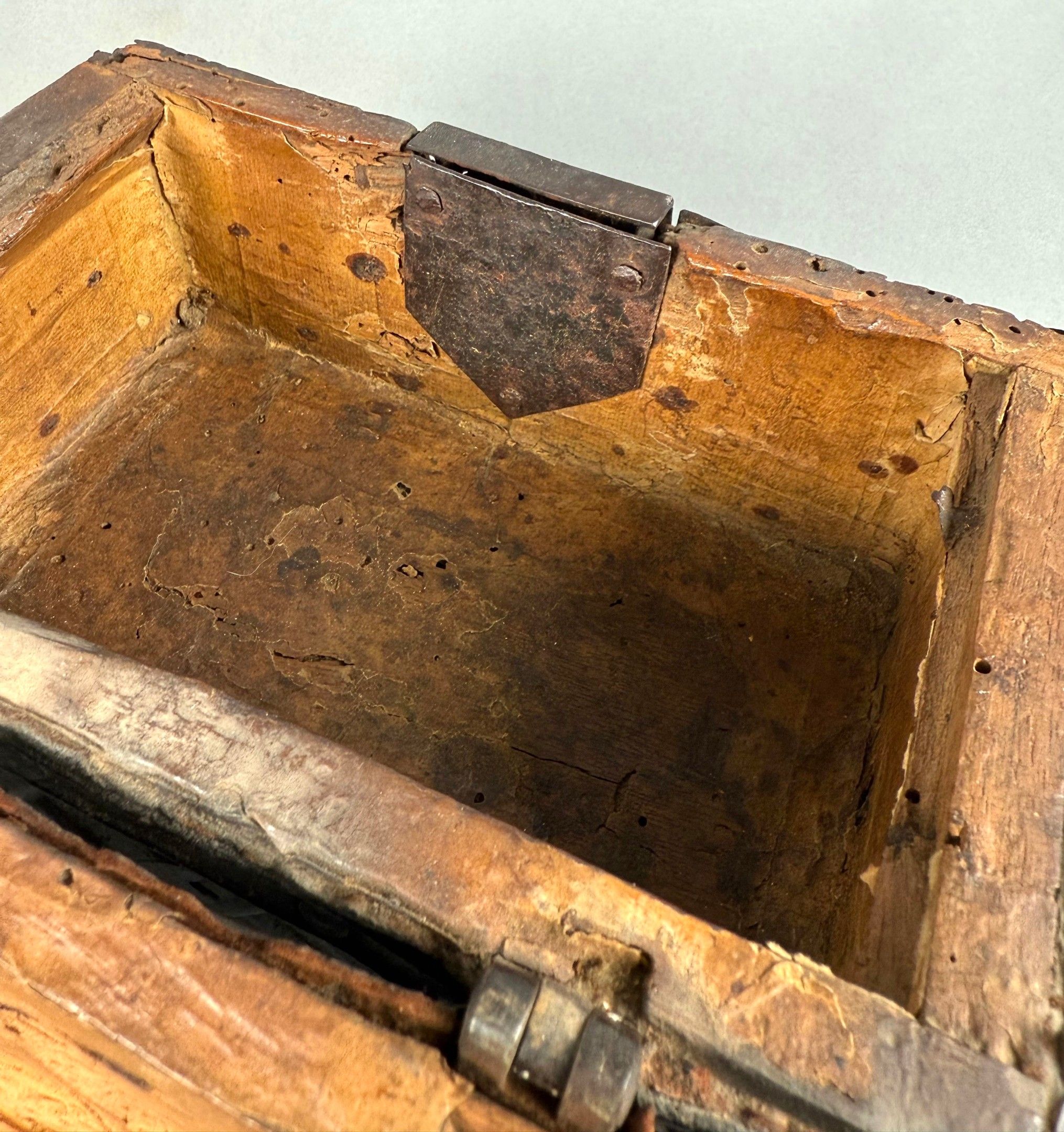 Coffret à âme en bois recouvert de cuir et de bandes en fer …