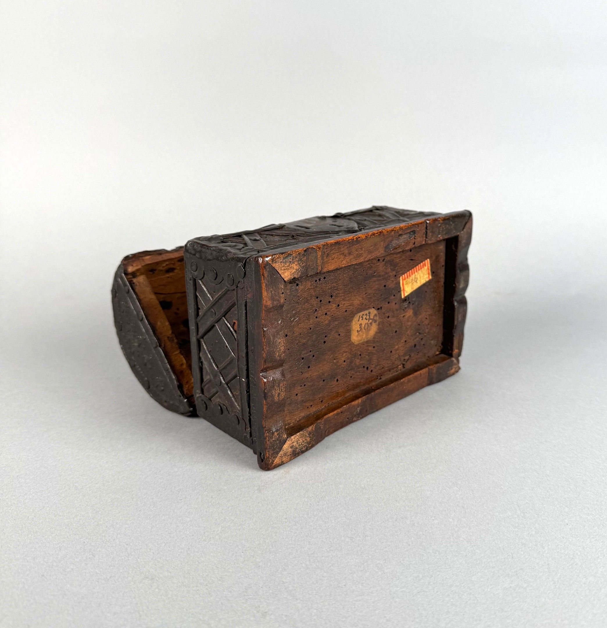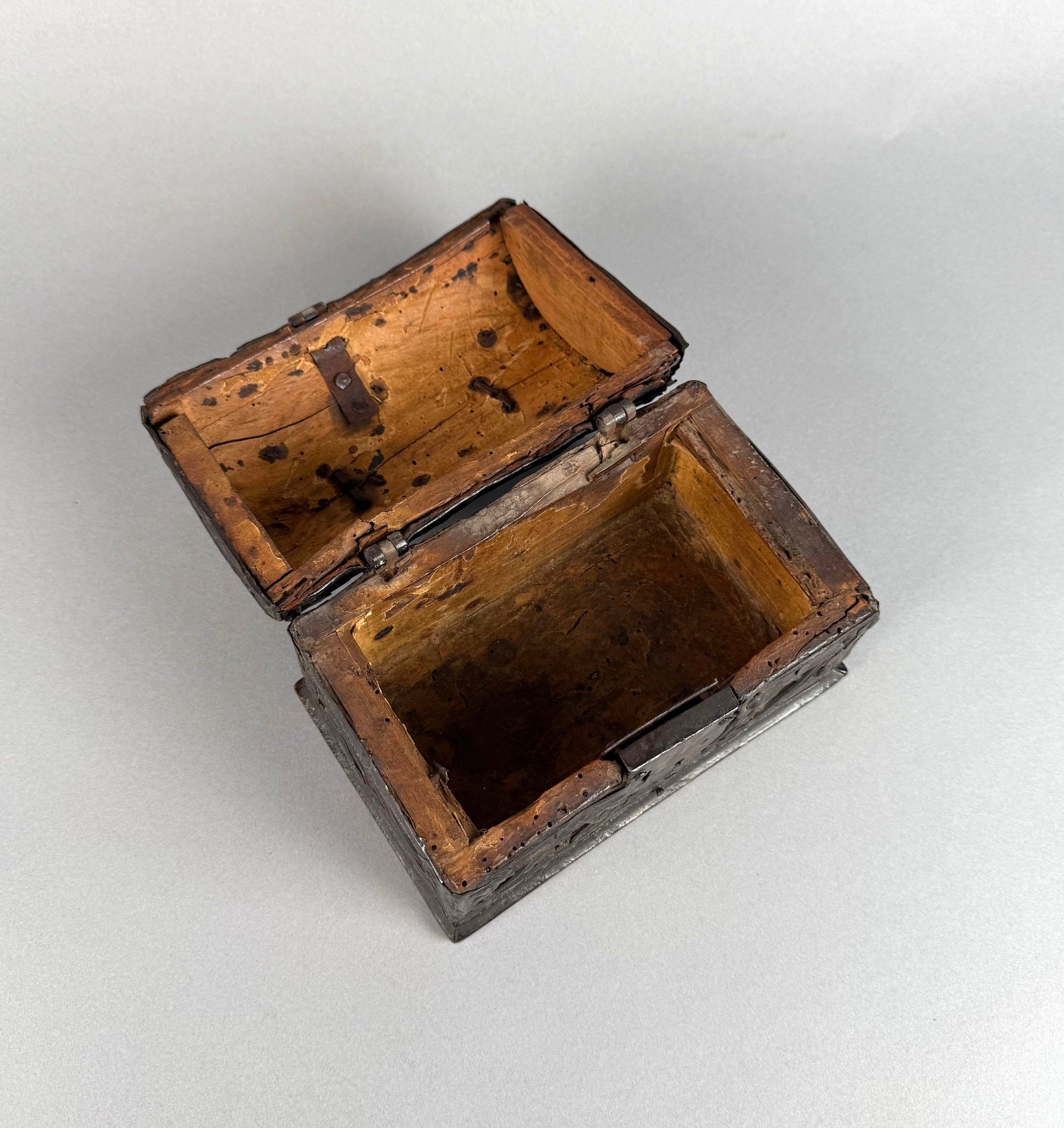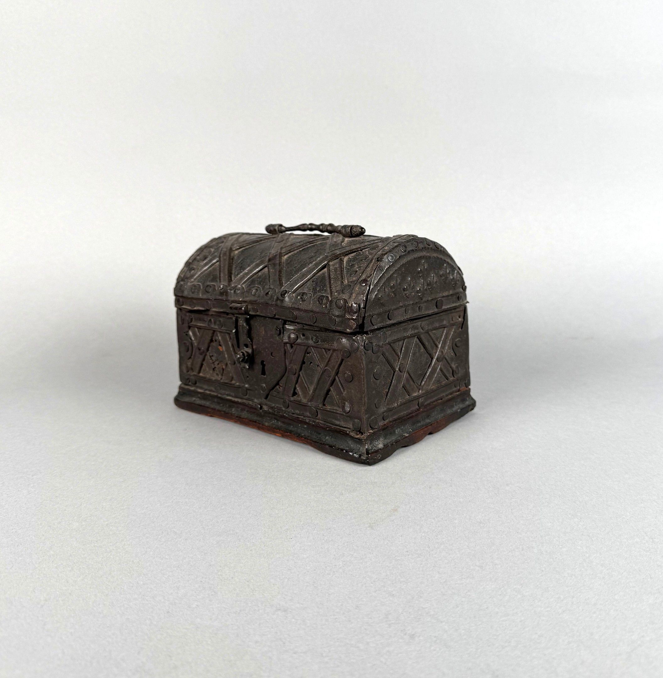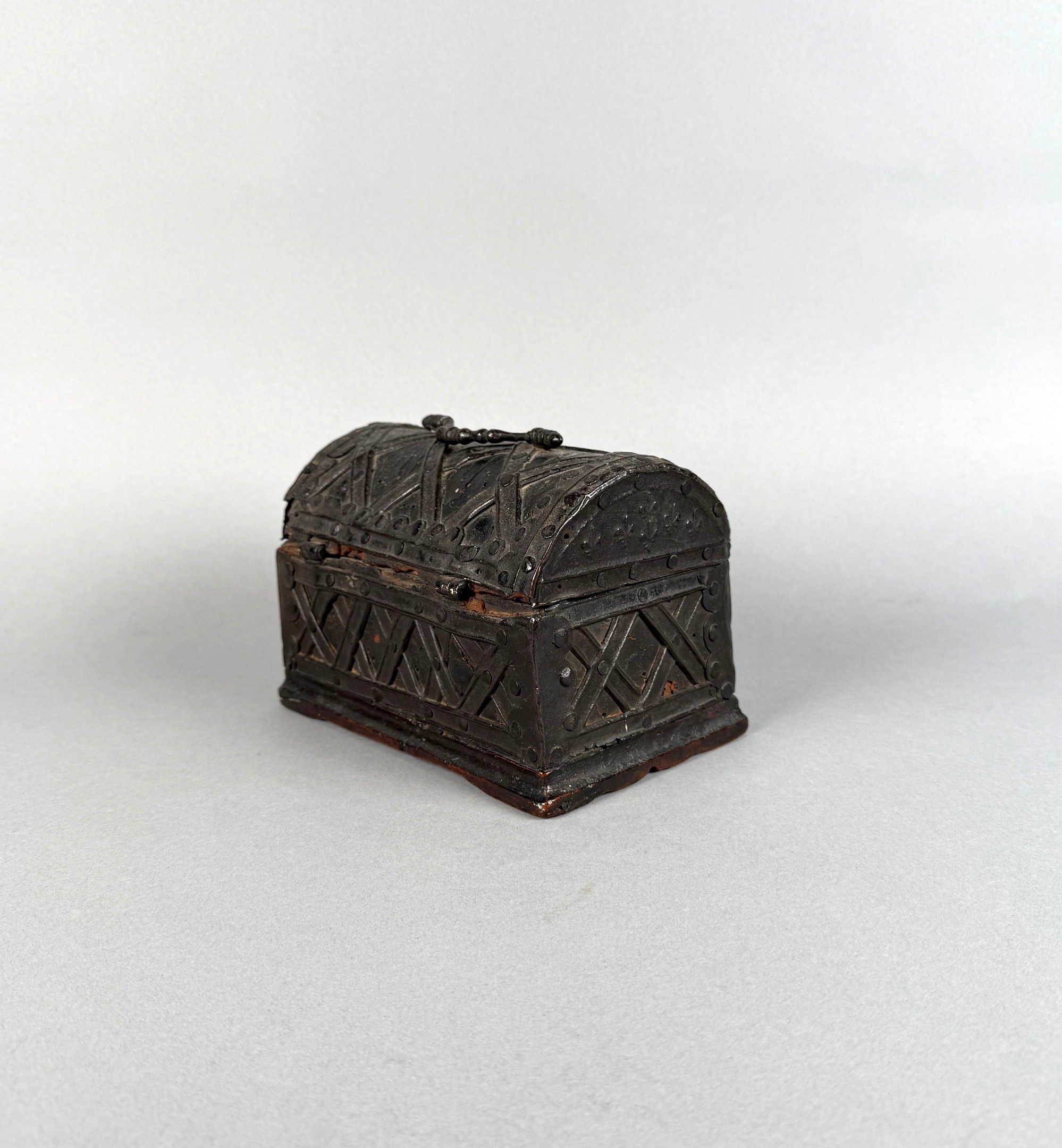 Coffret à âme en bois recouvert de cuir et de bandes en fer …