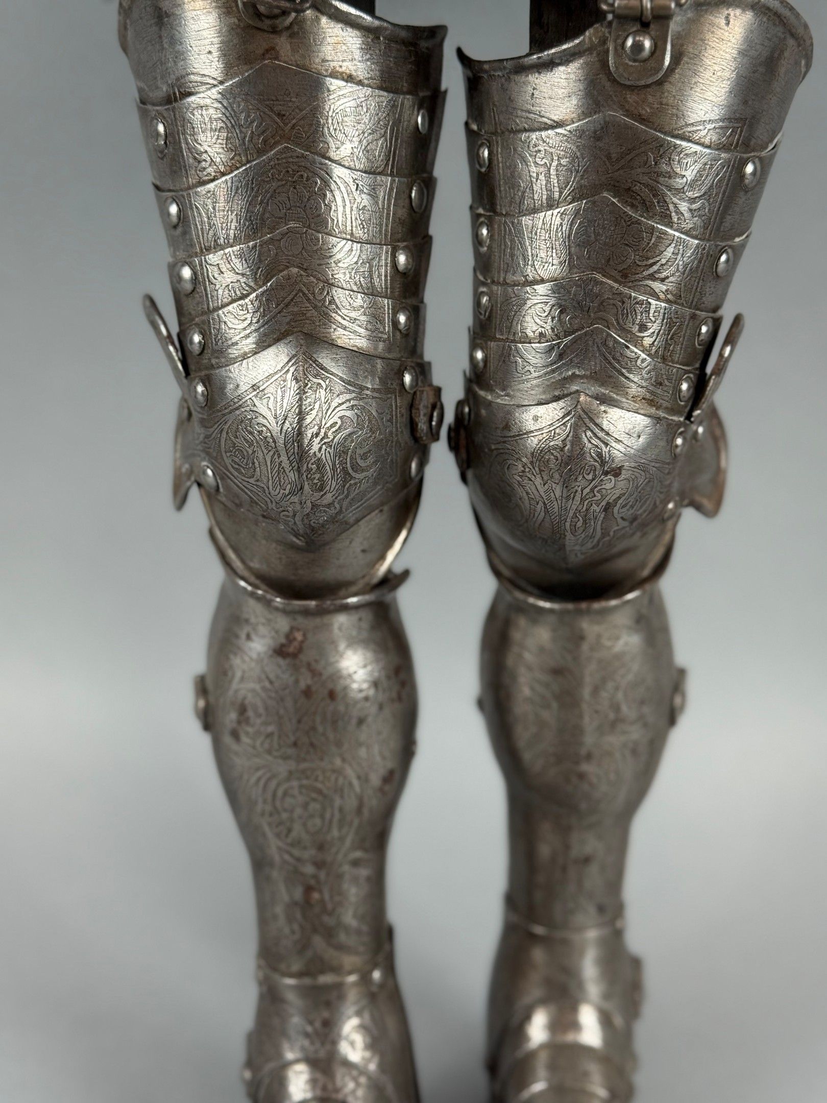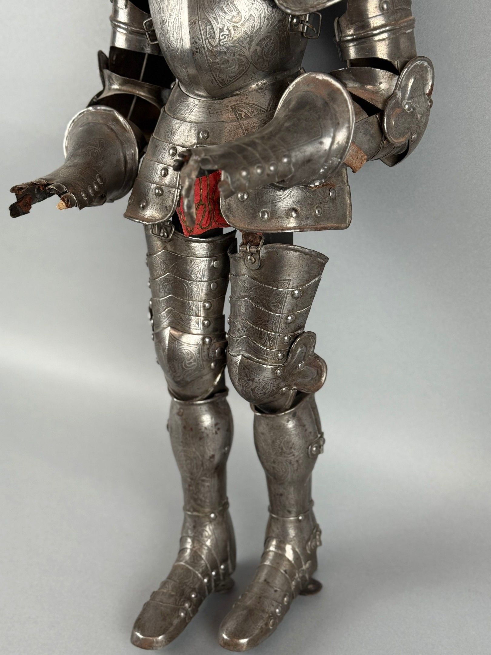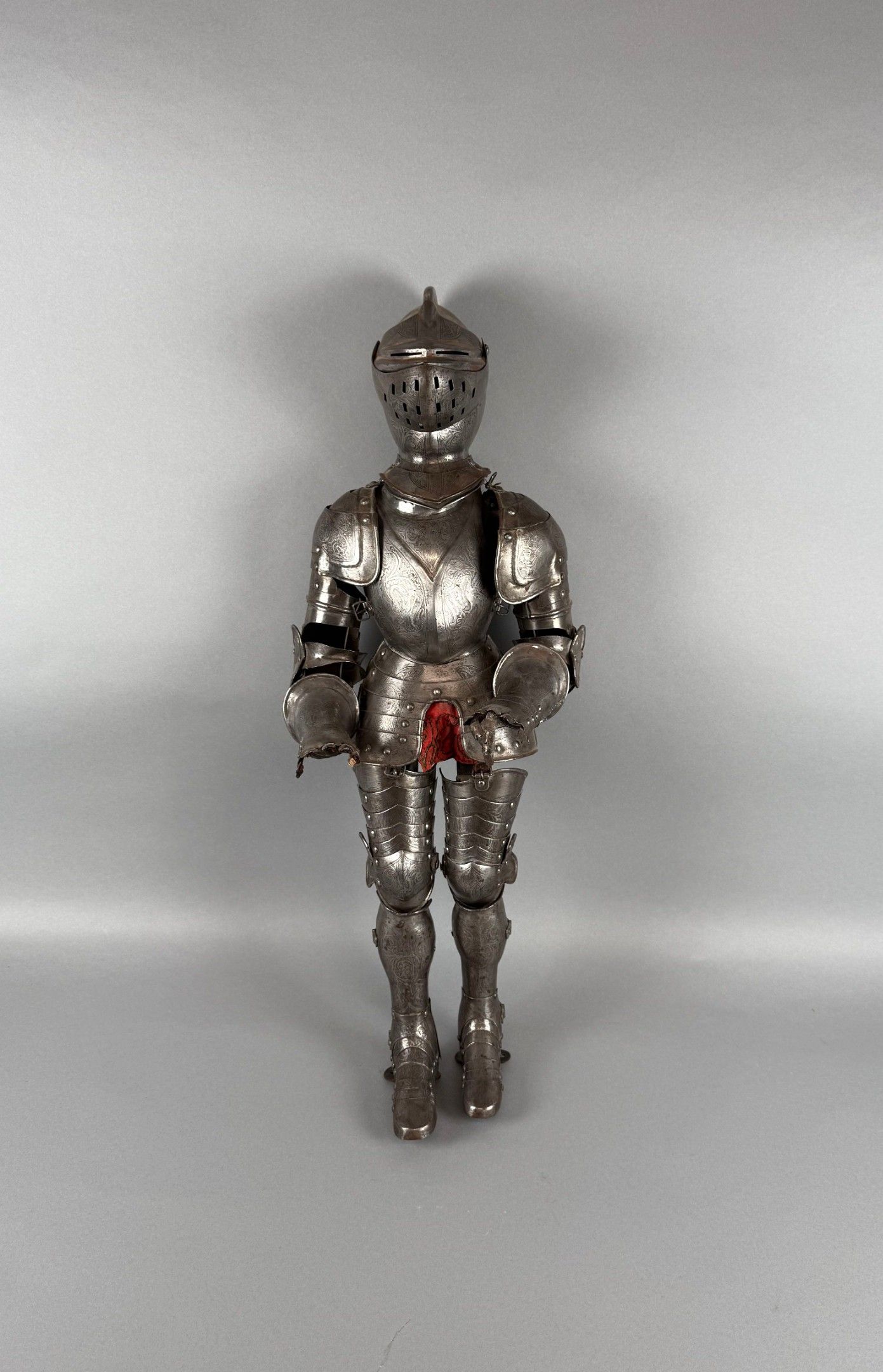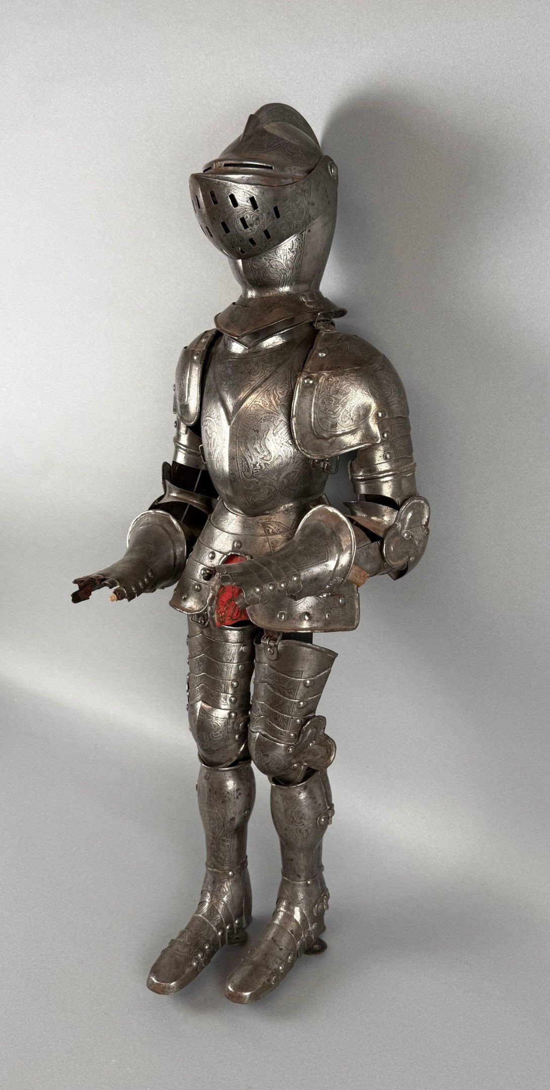 Armure en réduction Armet en proue de navire. Gravures à l’eau-forte à décor végétal. Époque fin XIXe. Bon état. Hauteur : 72 cm