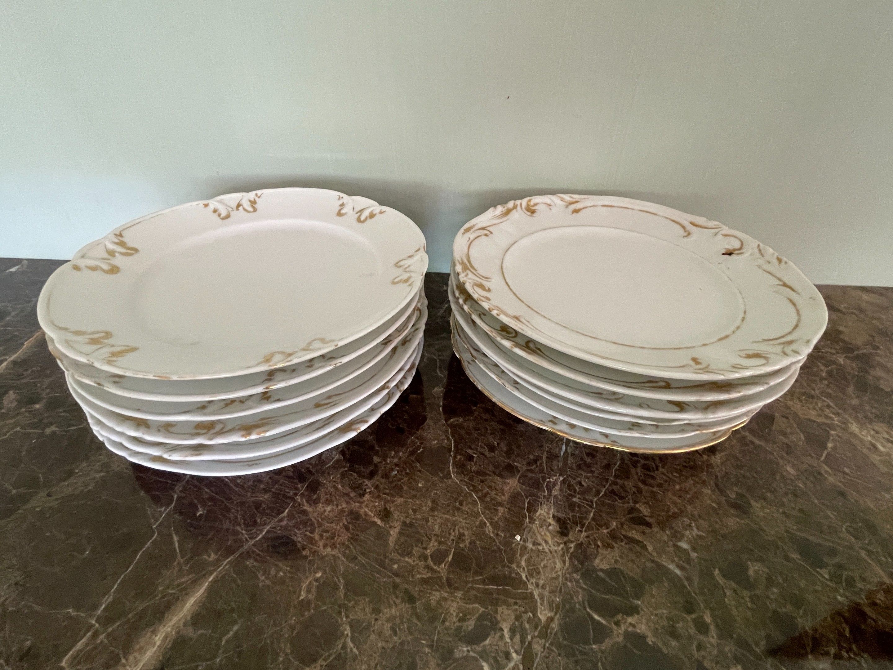 on y joint douze assiettes en porcelaine blanche et or ailes chantournées, XIXe s., usures, et divers