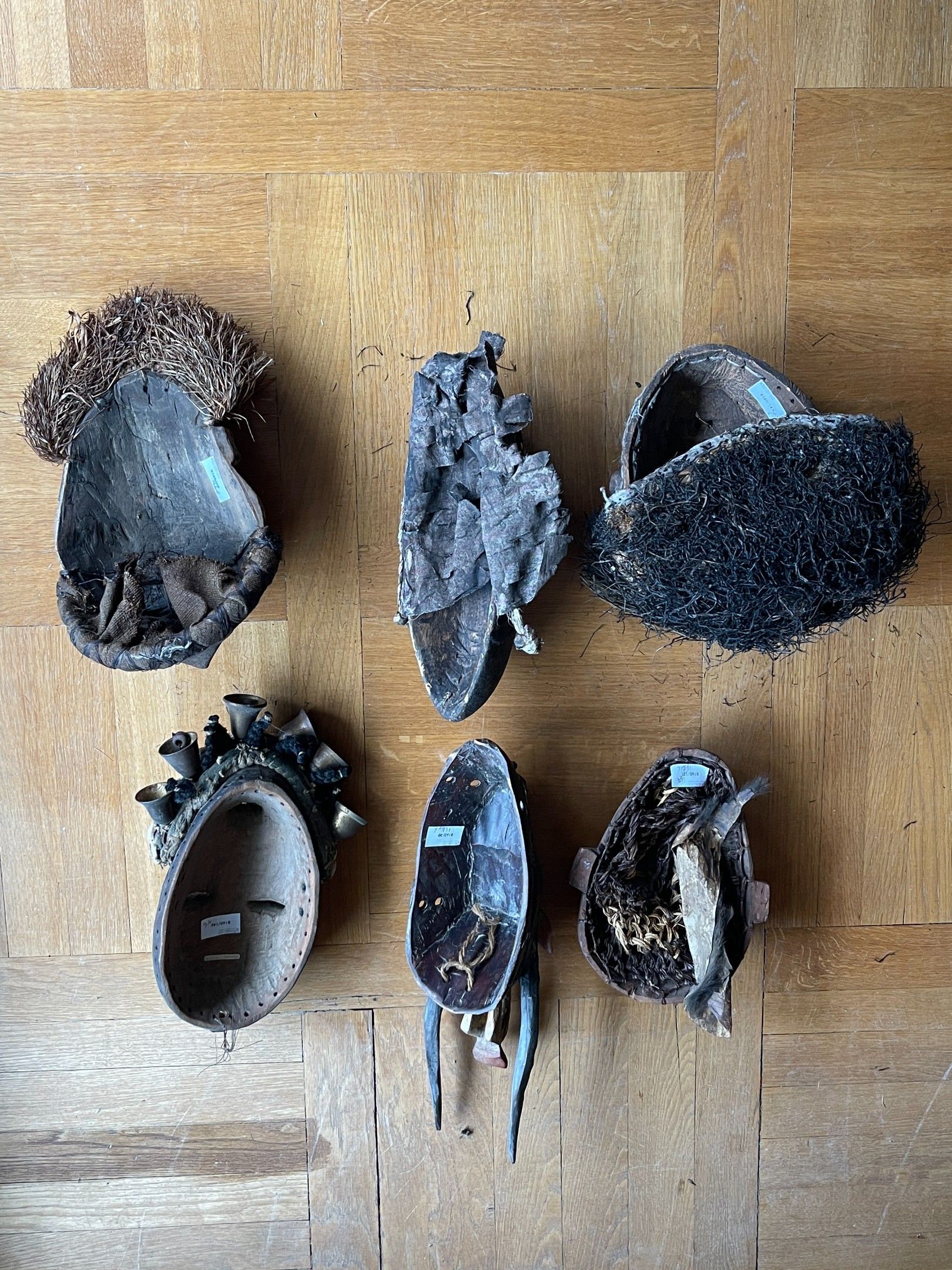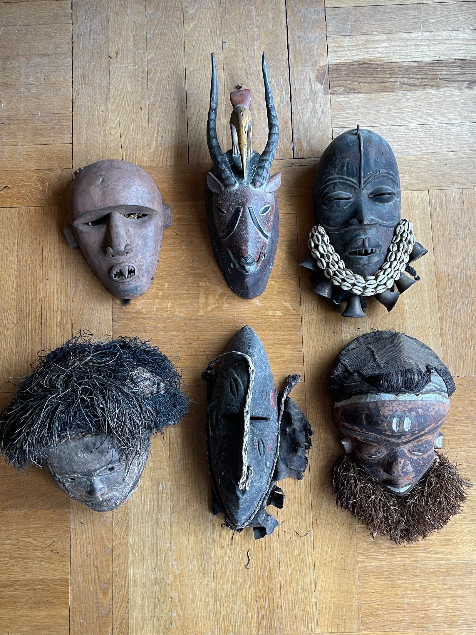 Ensemble de six masques en bois Afrique, seconde moitiè du XXe s. A PRENDRE A GENNEVILLIERS