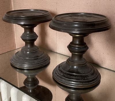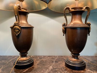 Paire d'urnes en laiton et bronze, anses à décor de serpents…