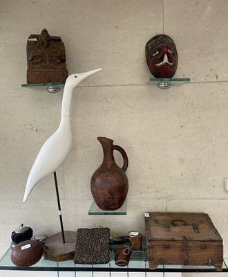 Lot d'objets divers, souvenirs de voyage, dont: Asie, coffre…