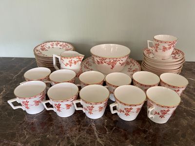 Partie de service à thé en porcelaine à décor imprimé floral…