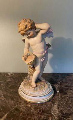Amour au panier, sujet en porcelaine polychrome, Meissen, mo…