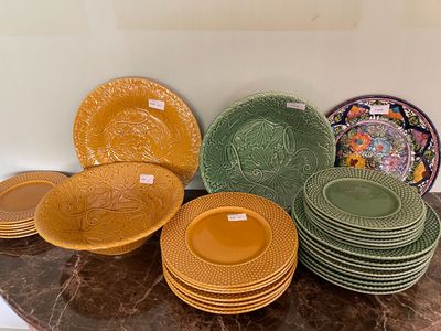 Lot de céramique émaillé jaune et verte, Portugal XXe s., do…