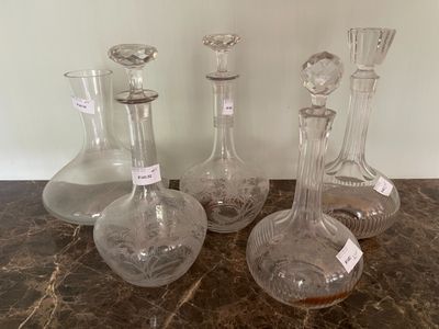 Lot de carafes en verre dont une paire de carafes en verre c…