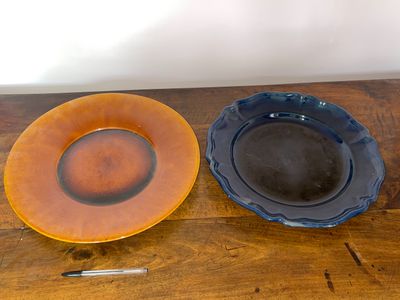 Lot comprenant: - Deux plats en céramique monochome en BIOT