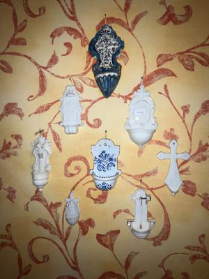 Sept bénitiers en faience ou porcelaine, XIXème et XXème s. …