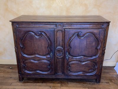 Buffet d'enfilade en bois mouluré et sculpté de feuilles, la…