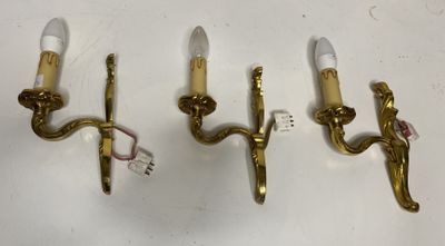 Trois appliques en bronze doré à une lumières à décor de feu…