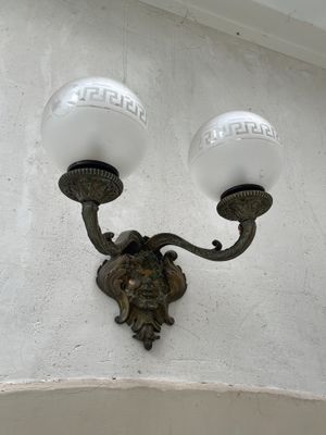 Paire d'appliques en laiton à décor de mascarons flanqués de…
