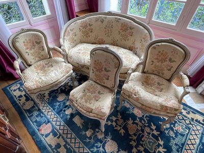 Mobilier de salon en bois laqué crème, comprenant un canapé …
