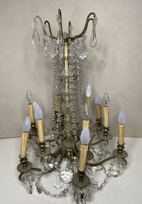 Lustre en bronze et pampilles de verre à deux rangs de six l…