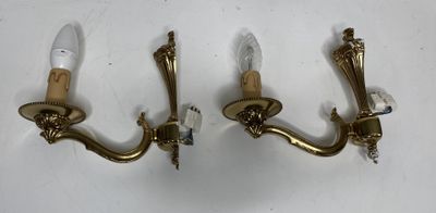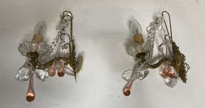 Paire d'appliques en bronze et pampilles de verre à une lumi…