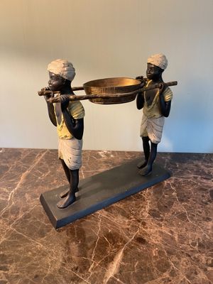 Groupe en bronze et métal, deux porteurs "nubiens" XXe s.