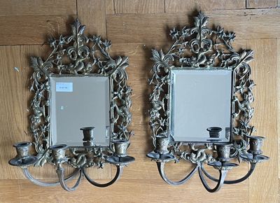 Paire de miroirs d'appliques à trois bras de lumière en bron…