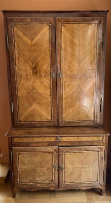 Buffet deux corps en bois de placage et filets de marqueteri…