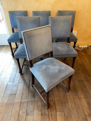 Six chaises en bois naturel, pieds tournés réunis par des en…