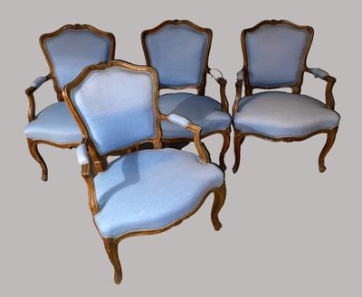 Quatre fauteuils cabriolet en bois naturel mouluré et sculpt…