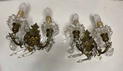 Paire d'appliques en bronze et pampilles de verre à deux lum…