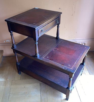 Escabeau bibliothèque en bois teinté ouvrant à deux tiroirs