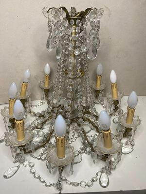 Lustre en bronze et pampilles de verre à dix lumières Style …