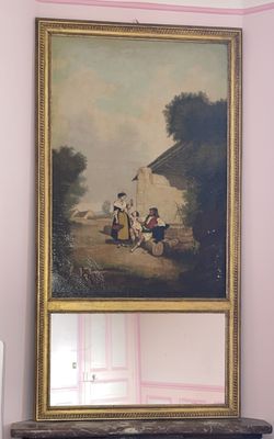 Trumeau en bois doré, orné d'une toile à décor de scène de f…
