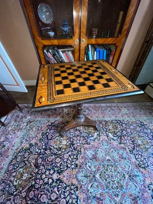 Table à jeux en bois de placage à plateau échiquier, pièteme…